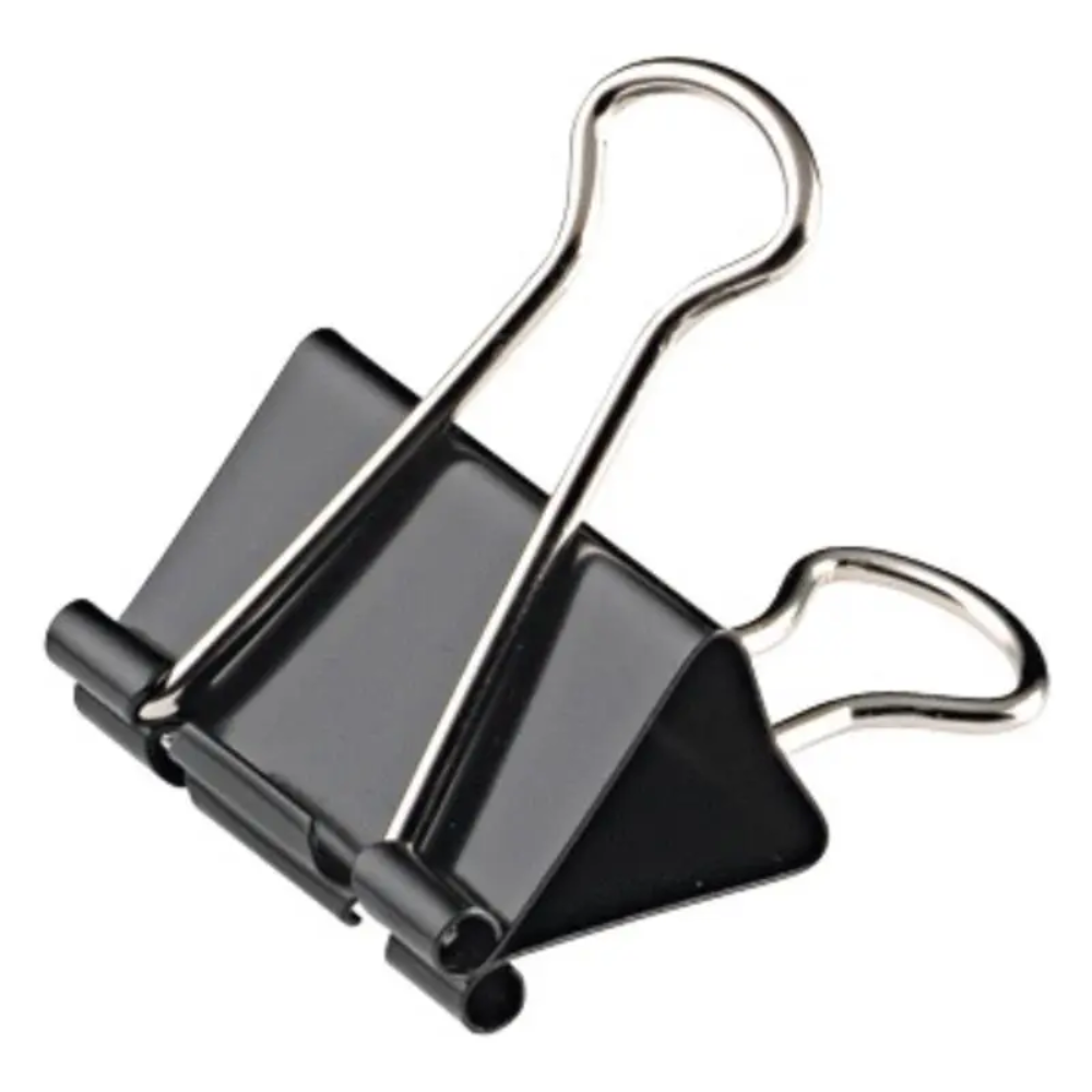 Çok kalın döküman gruplarını, dosyaları veya projeleri delmeye gerek kalmadan bir arada tutmak için tasarlanmış, en büyük boy standartlara sahip, ekstra güçlü yay mekanizmalı metal kıskaç (binder clip) birimidir.